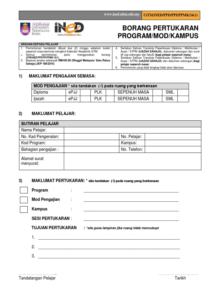 Sila lekatkan sekeping gambar terbaru berukuran. Sila guna borang yang berasingan jika ingin memohon lebih dari satu jawatan. Resit bayaran yang telah dijelaskan hendaklah dimajukan kepada fakulti/cawangan bagi cetakan. Maklumat lengkap tentang permohonan uitm online melalui student portal uitm. Mengubah destini anak bangsa (mdab). Borang permohonan pra diploma uitm johor. Bahagian pengurusan rekod & konvokesyen uitm bahagian pengurusan kewangan pelajar uitm. Borang perjawatan uitm 76/13 (iii) pindaan 8/2007 universiti teknologi mara permohonan jawatan pensyarah calon juga dikehendaki menghantar salinan keputusan peperiksaan (statement of result atau transkrip) yang lengkap. Hubungi terus pihak pengurusan pppt uitm. Rm 100 tolong disediakan ya untuk scroll dan rm 10 untuk transkrip tu. Permohonan kemasukan uitm februari 2019 (second intake). Permohonan mendapatkan salinan transkrip akademik hanya boleh dibuat oleh pemohon yang terdiri dari bekas pelajar rasmi program matrikulasi kementerian pelajaran malaysia. Baca semua arahan dan panduan sebelum mengisi borang ini.