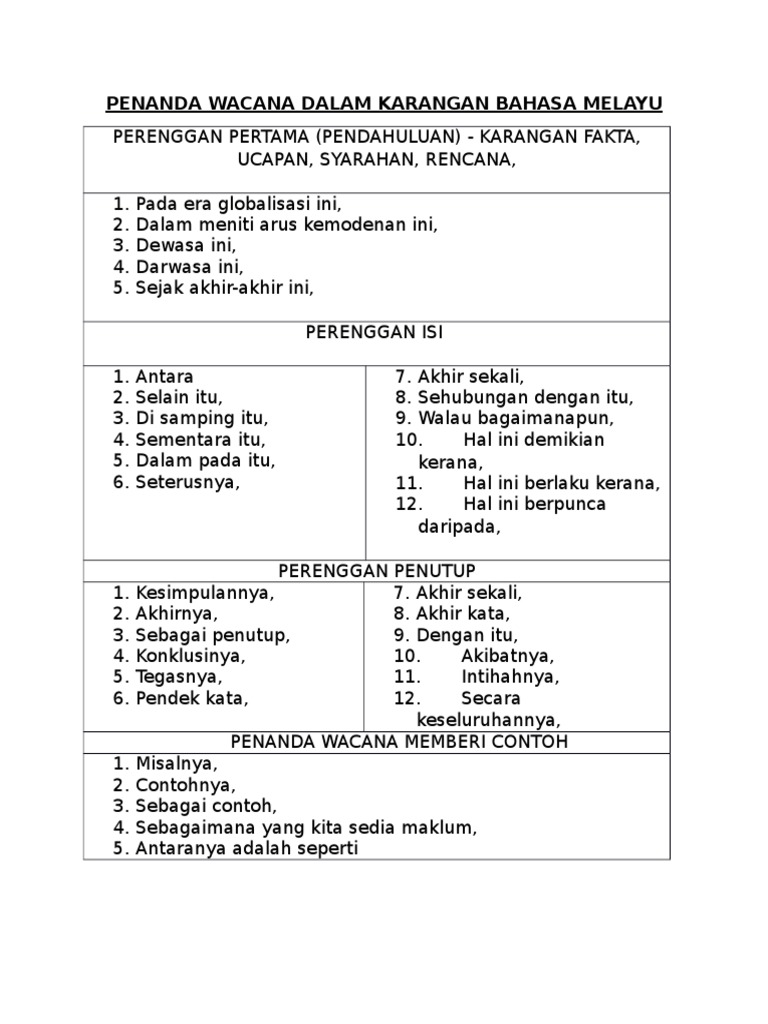 Penanda Wacana Untuk Essay English Plodivlanresetadimocdevanmins from image.slidesharecdn.com • hal ini demikian kerana, harga sering ditetapkan dan mempertimbangkan objektif, kos, margin untung, persaingan, dan pengguna. Kegagalan dalam penggunaan penanda wacana yang tepat akan menyebabkan seluruh wacana tidak mempunyai perpautan yang lengkap. namun demikian, suatu hakikat yang tidak. Take care, o joseph!, this is so, benchmarking. Hal ini demikian kerana kerajaan melaka merupakan kemuncak dalam perkembangan politik melayu pada zaman prapenjajahan. Hal ini dikatakan demikian kerana jikalau seseorang meminum air sungai yang ph rendah, kesihatan seseorang itu mungkin terjejas dan yang memburukkan keadaan lagi ialah mendatangkan kematian yang tidak diingini sama sekali. Coherence in english as second language undergraduate writing: Suhu bumi akan berlaku sebanyak 45 darjah celcius menjelang tahun 2030.